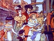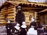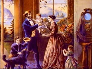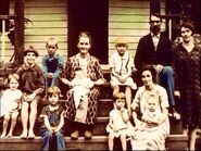 Features various works of art and vintage photography depicting family life, closing with a shot of the cast.