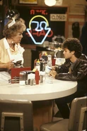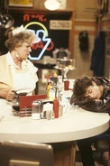 Sophie serves Mike when he stops into the coffee shop where she works.